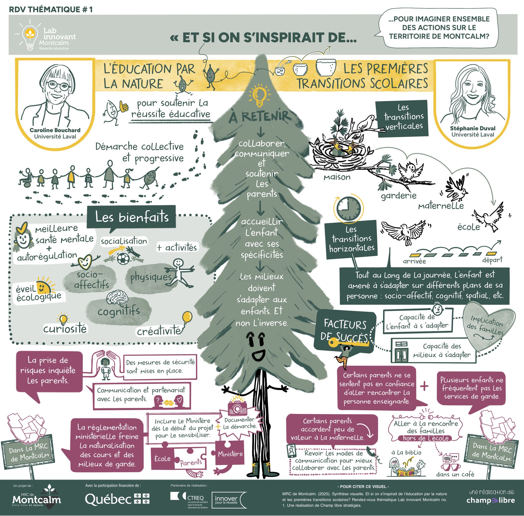 La Municipalité régionale de comté (MRC) de Montcalm et ses partenaires ont offert une conférence double dans le cadre des Rendez-vous thématiques de leur projet de laboratoire d’innovation en réussite éducative. Pour offrir une synthèse de la conférence de Caroline Bouchard et Stéphanie Duval, la MRC de Montcalm a retenu l’illustration graphique, voyez l’infographie.